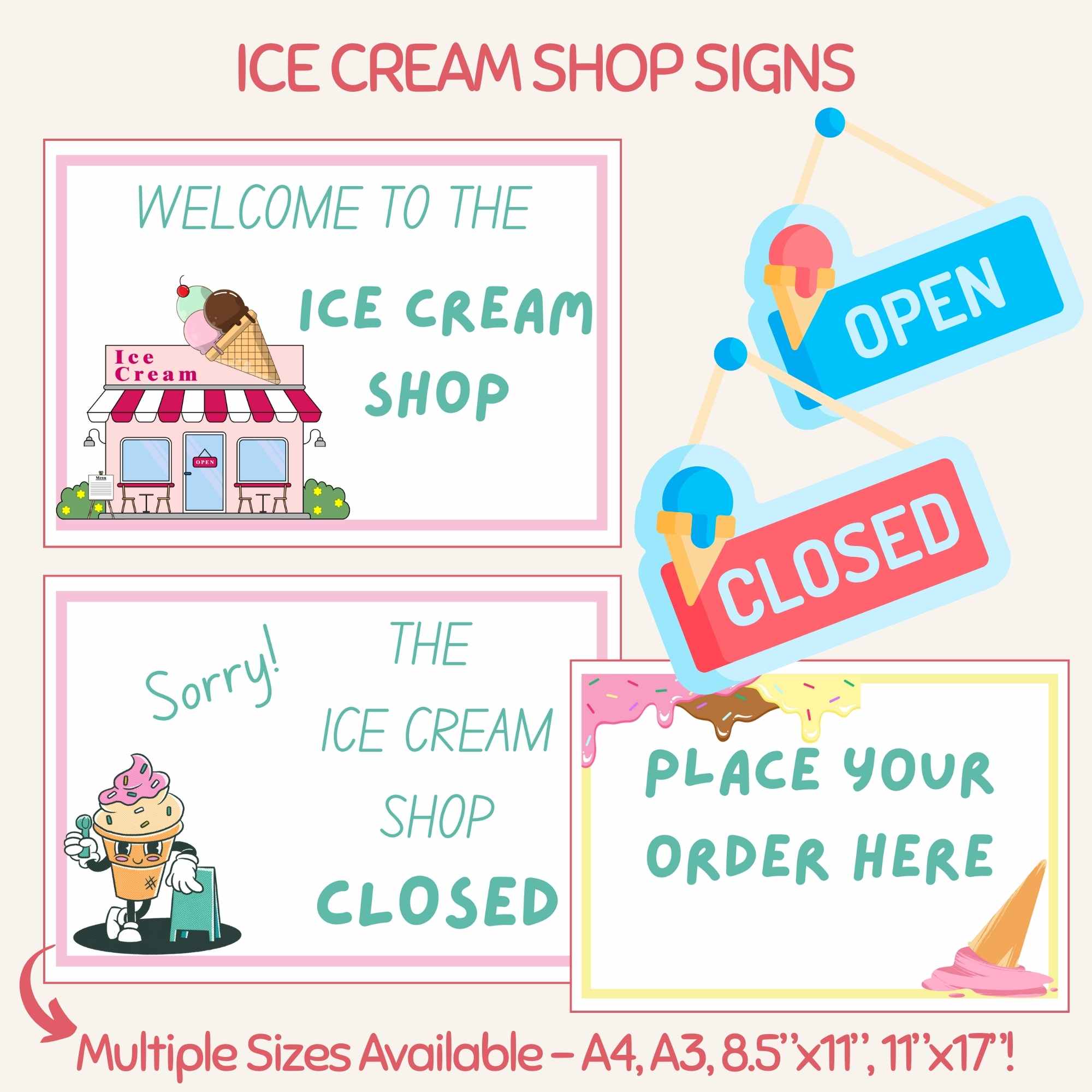 📜 Ice Cream Shop Signs (Open/Closed, Welcome Sign)
